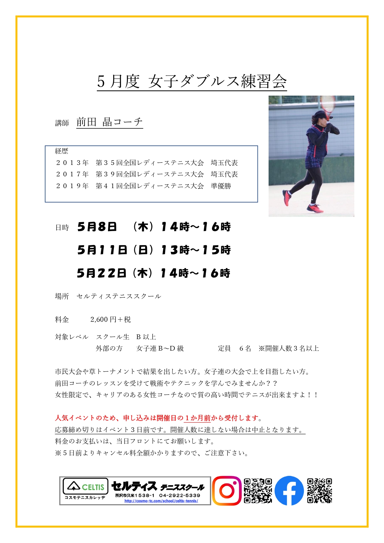 女子ダブルス練習会5月8日 14日 16日 外部参加者OK!