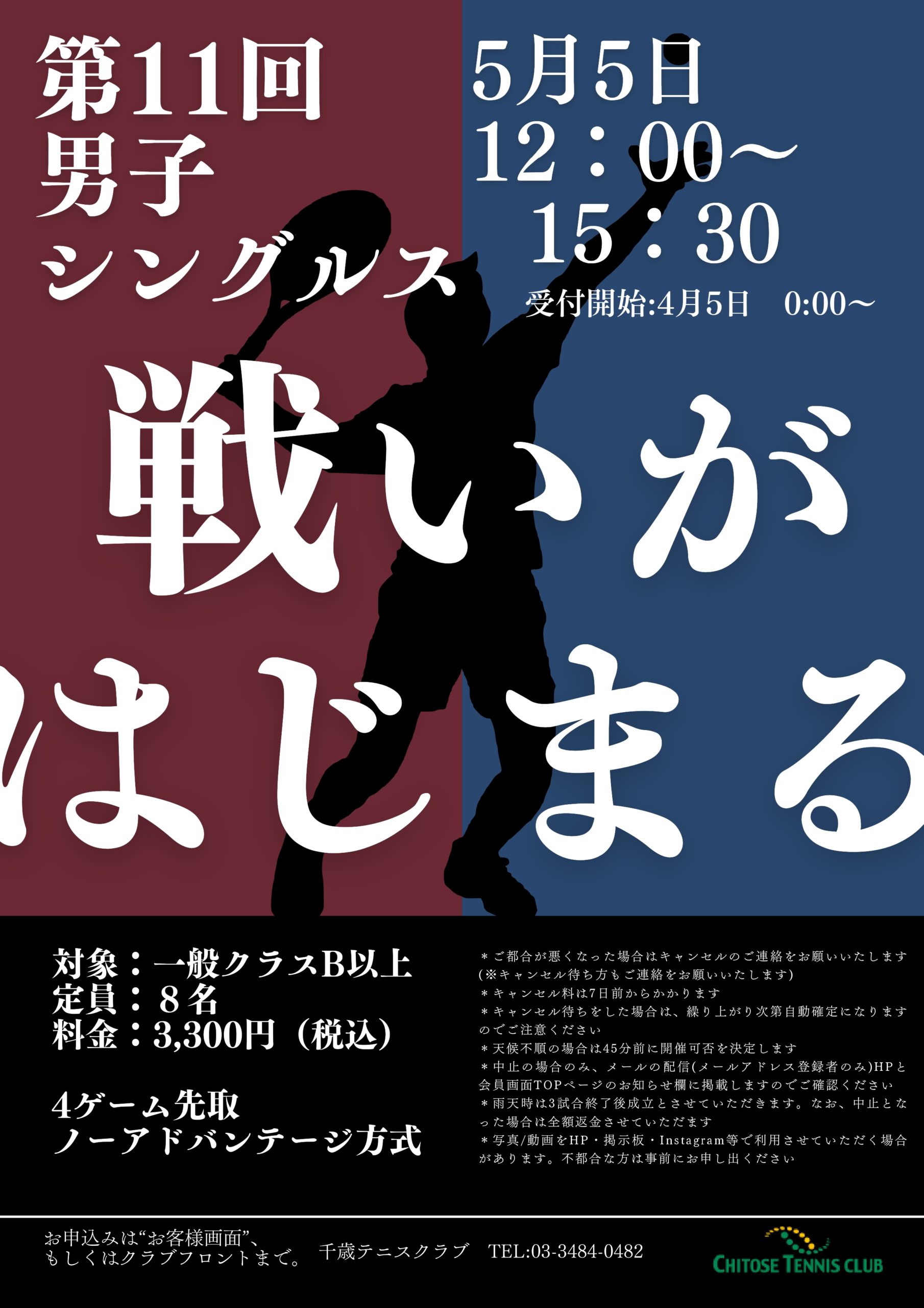 毎回、熱戦が繰り広げられる「男子シングルス」5月5日(月・祝)に開催いたします。