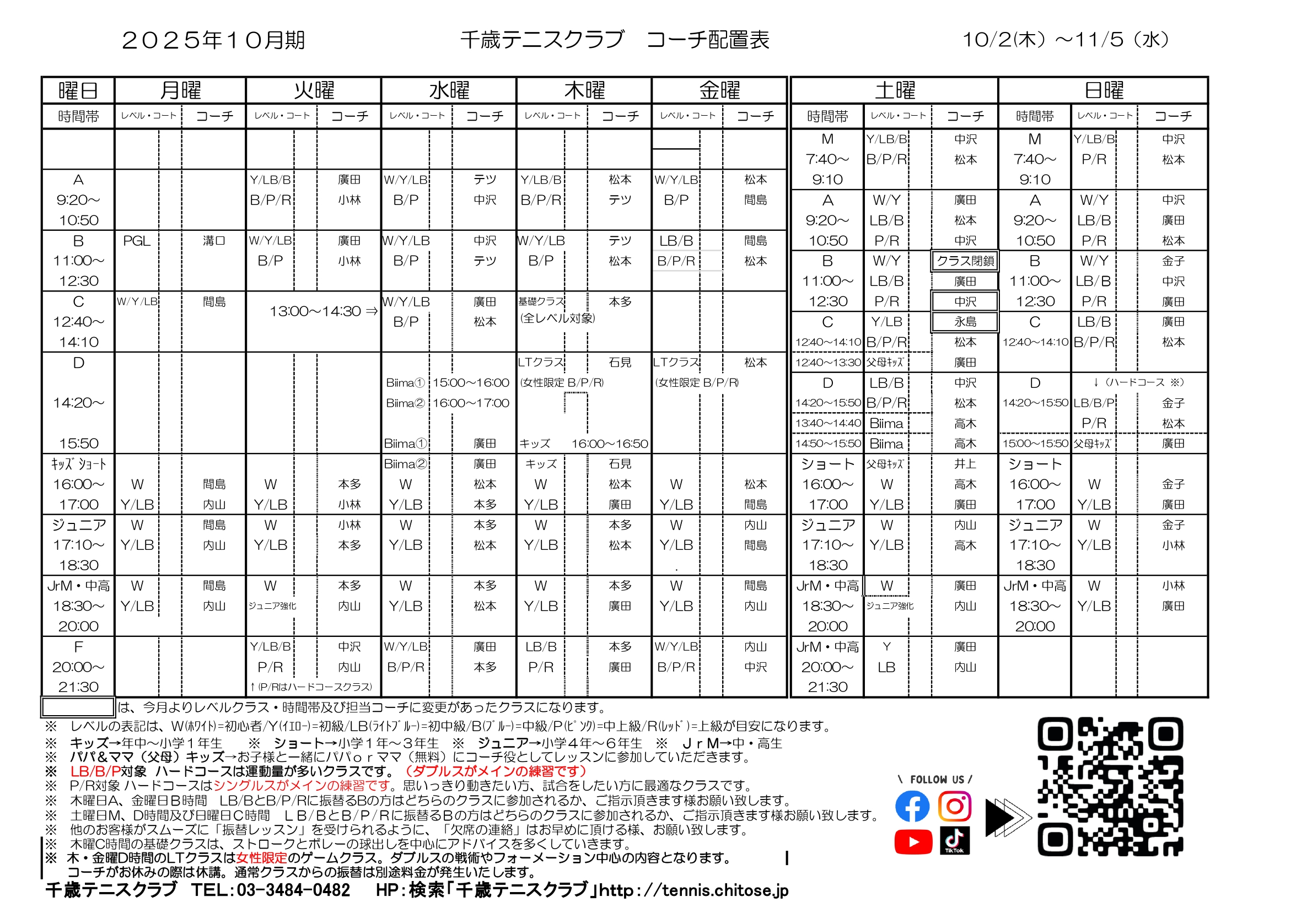 10月期 コーチ配置表