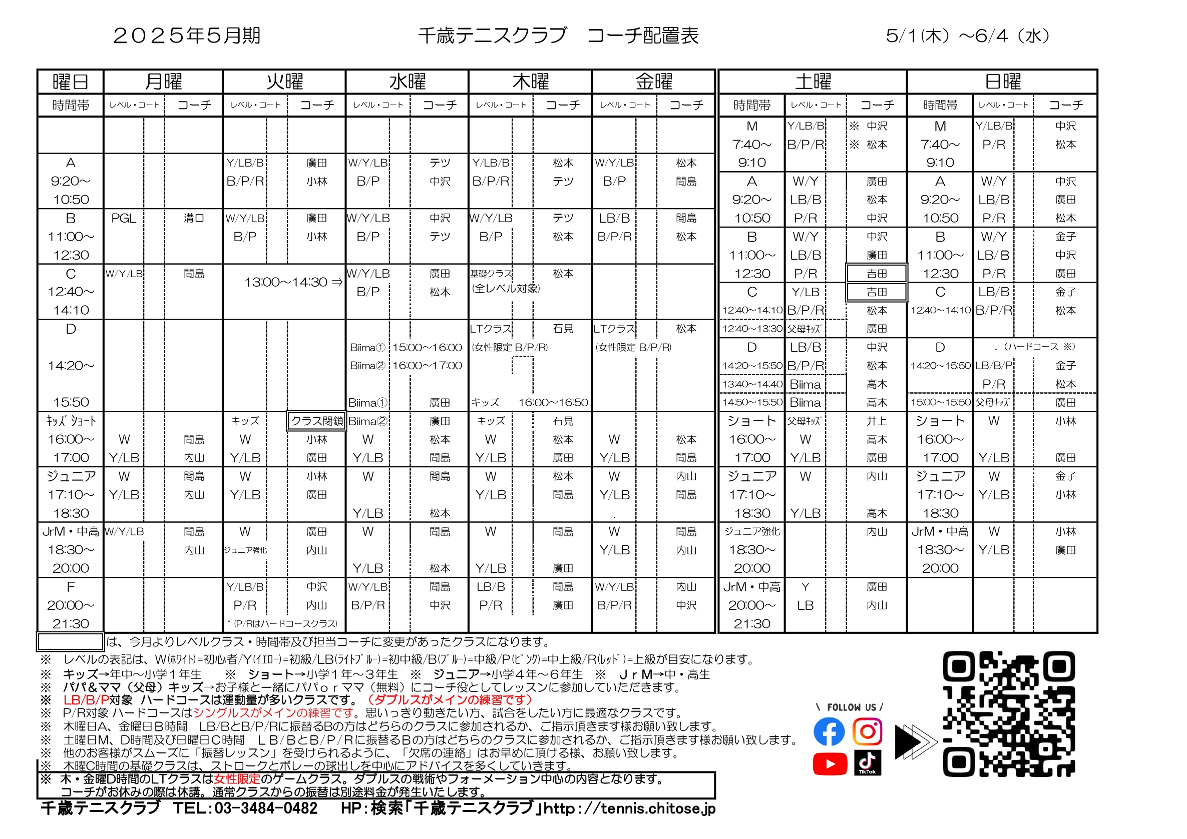 2025年5月度のコーチ配置表について、変更がありましたので再度ご確認のほどよろしくお願いいたします!