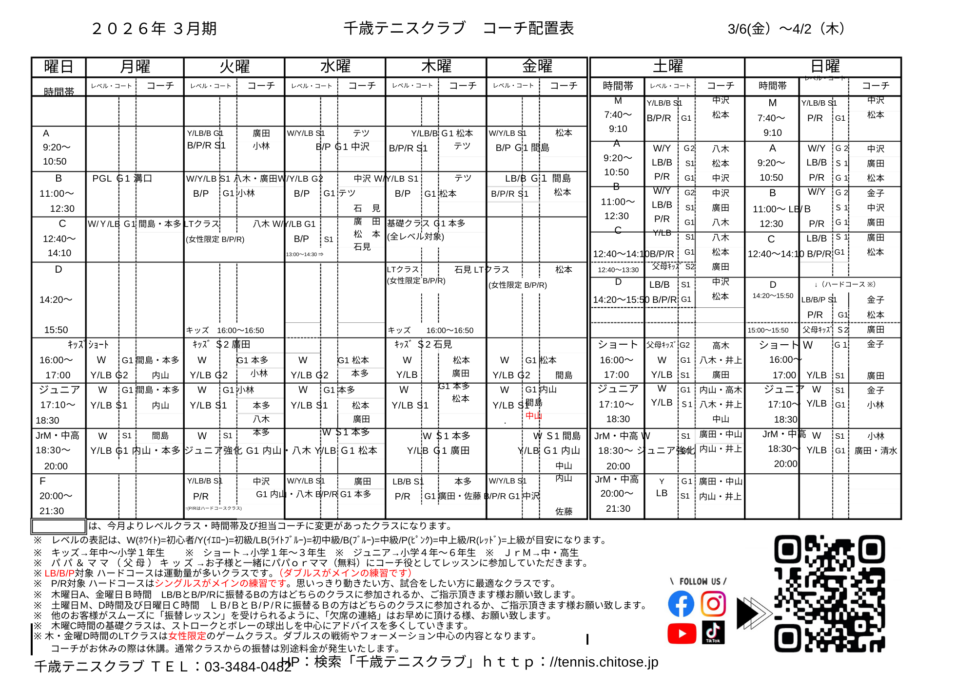 3月 コーチ配置表