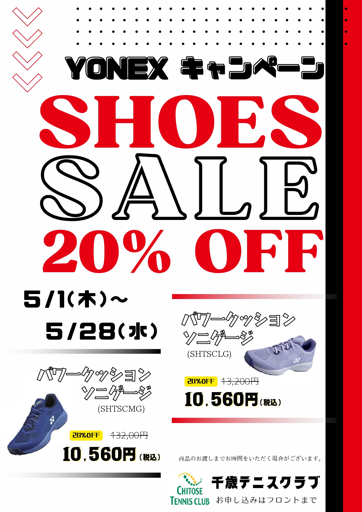 ヨネックスシューズキャンペーンを5/1(木)~5/28(水)の期間に実施します!